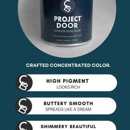 Color Baggage Exterior Door Project Paint  colors give you the hardness and durability of oil with latex color retention and conveniences. It is radiant, resilient, and strong. Brushstrokes melt away, delivering phenomenal flow, leveling, anti-sag, and anti-drip. Color formulations by artist Gretchen Schauffler combine ultra-rich pigmentation with a one-of-a-kind CHIFFON SATIN FINISH, elevating the visceral feeling of color to new heights, making it the most beautiful, effortless Project Paint to apply in the market. Let your door be a vibrant expression of your character and a warm welcome to all with CB Project Paint.